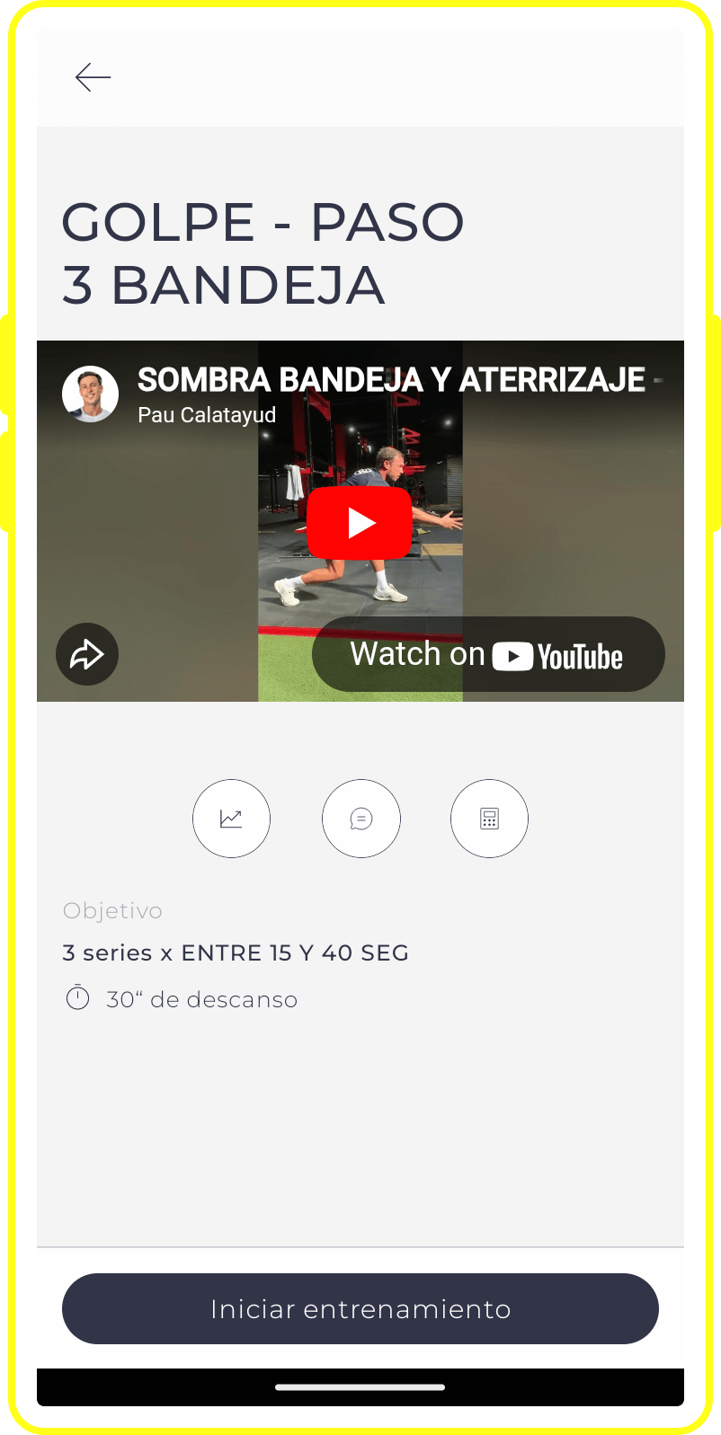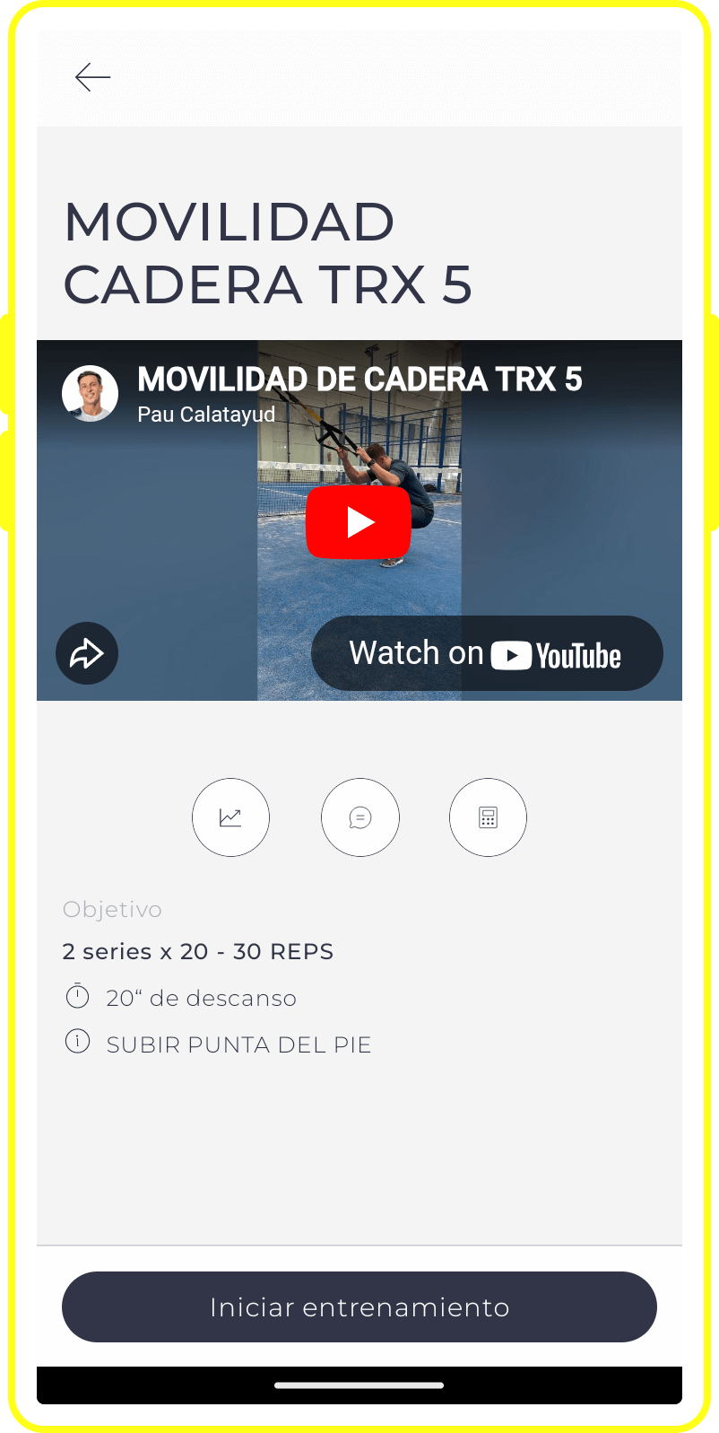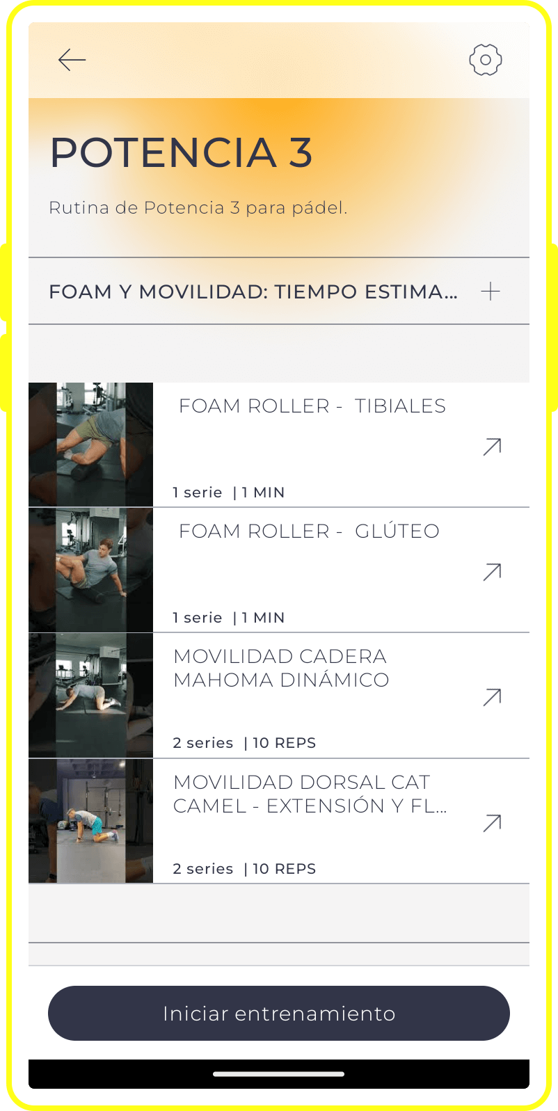 Accesible a través de la App de Pau Calatayud, específico para pádel, teniendo en cuenta si entrenas en casa o en el gimnasio, y de qué material dispones.