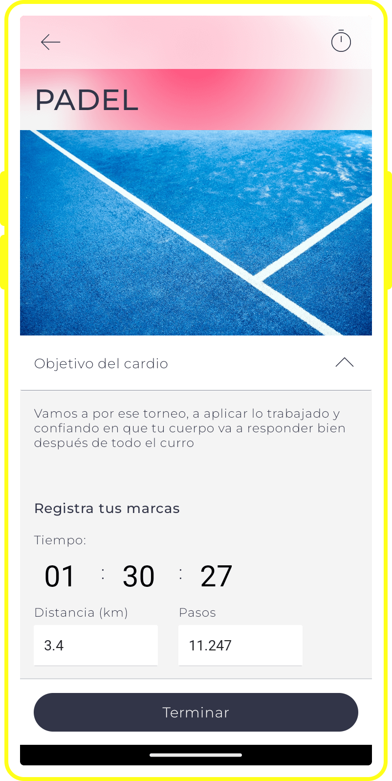 Los resultados han sido mucho mejores de lo esperado. Entré para mejorar mi físico y evitar lesiones, pero mi nivel de pádel ha subido, disfruto más los partidos y sigo una disciplina clara que me motiva a ser mejor.