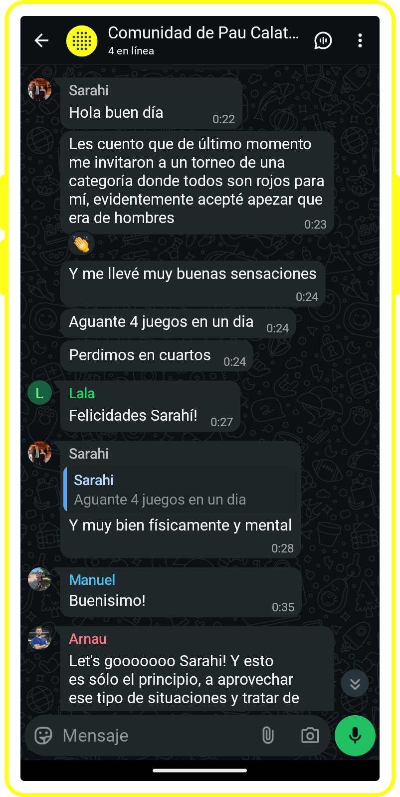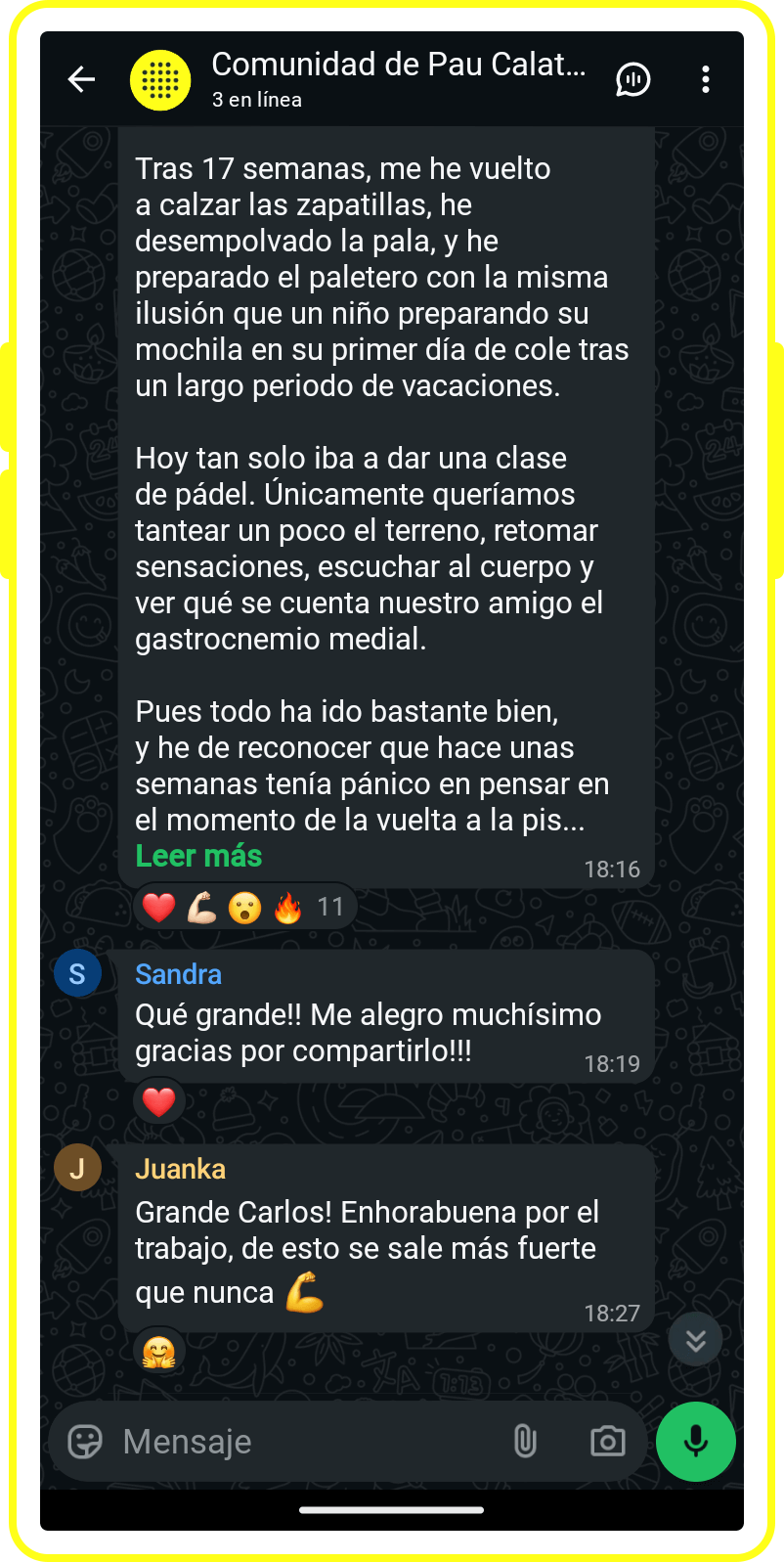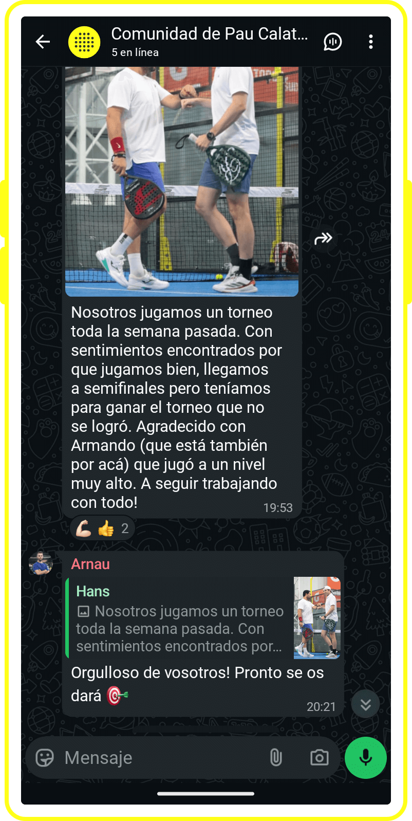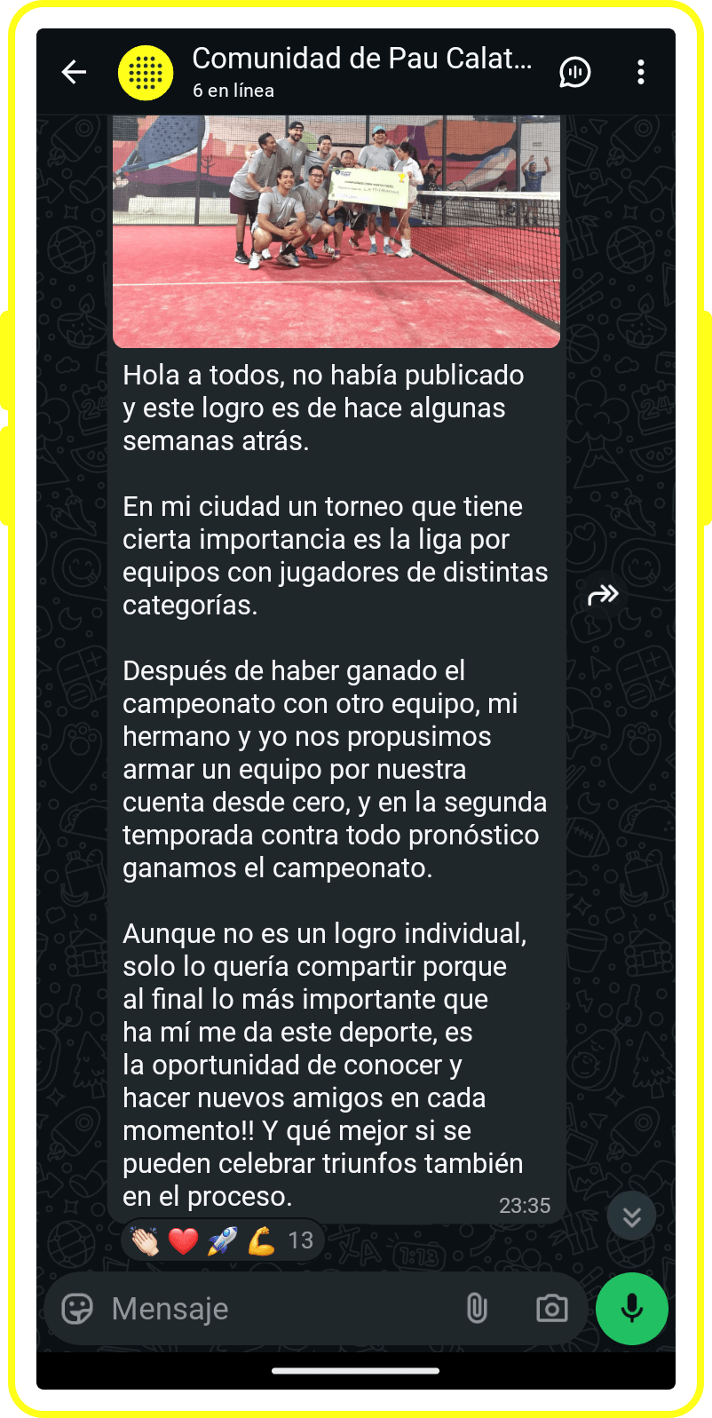 Además, el Método te da acceso a nuestra Comunidad padelera, donde compartimos experiencias de otras personas que ya han subido de categoría, han transformado su físico y han superado su lesión.
