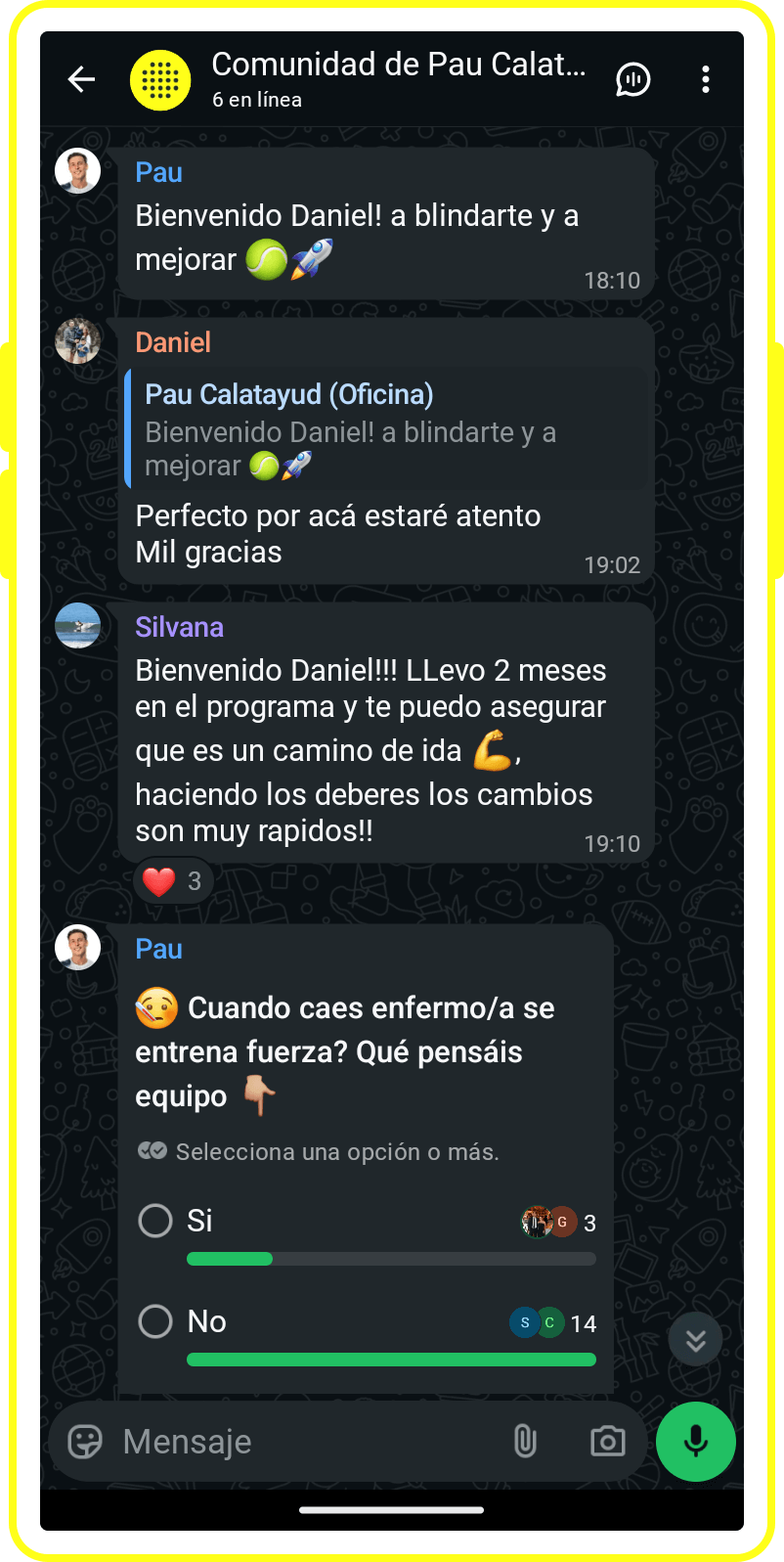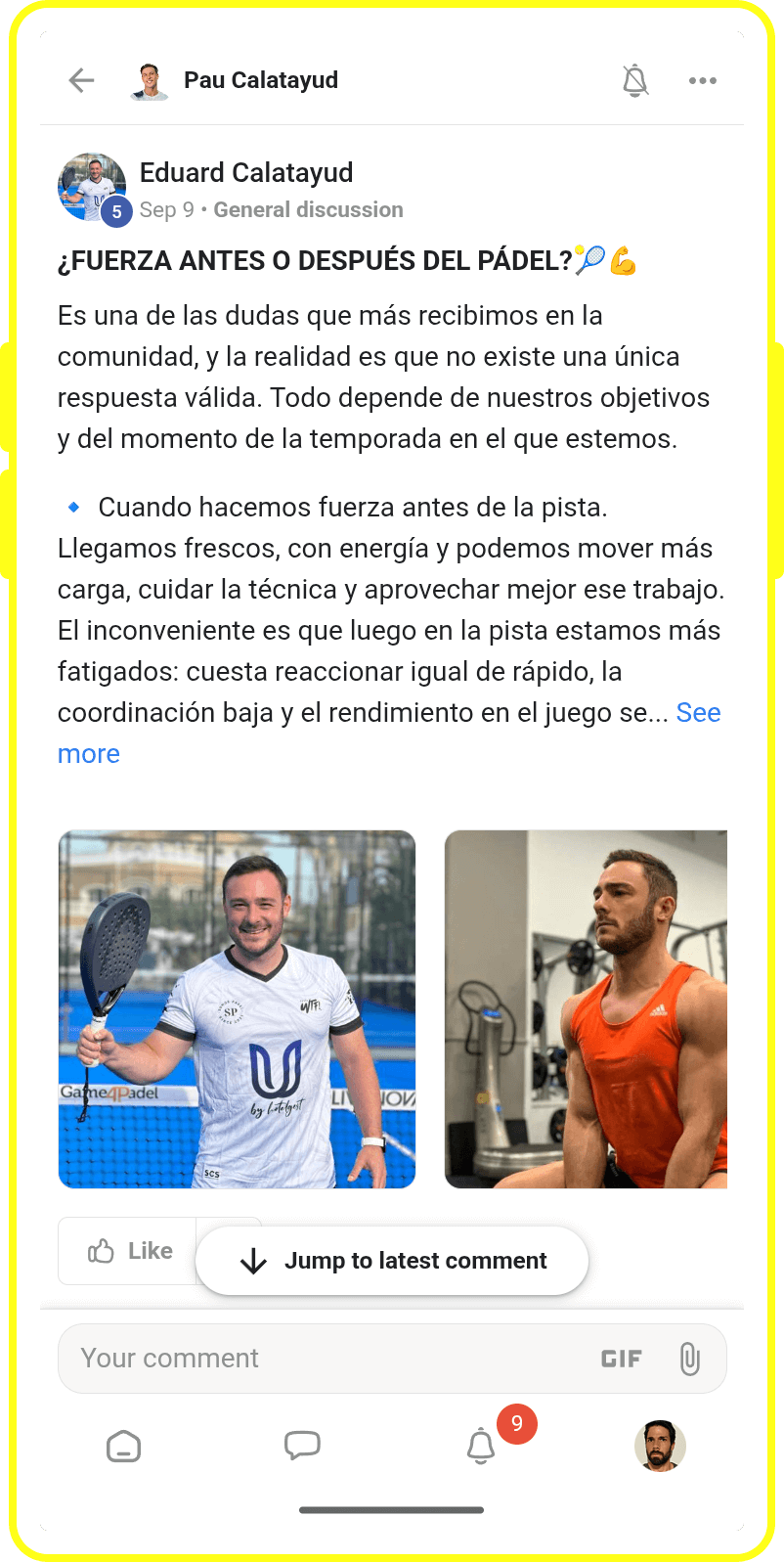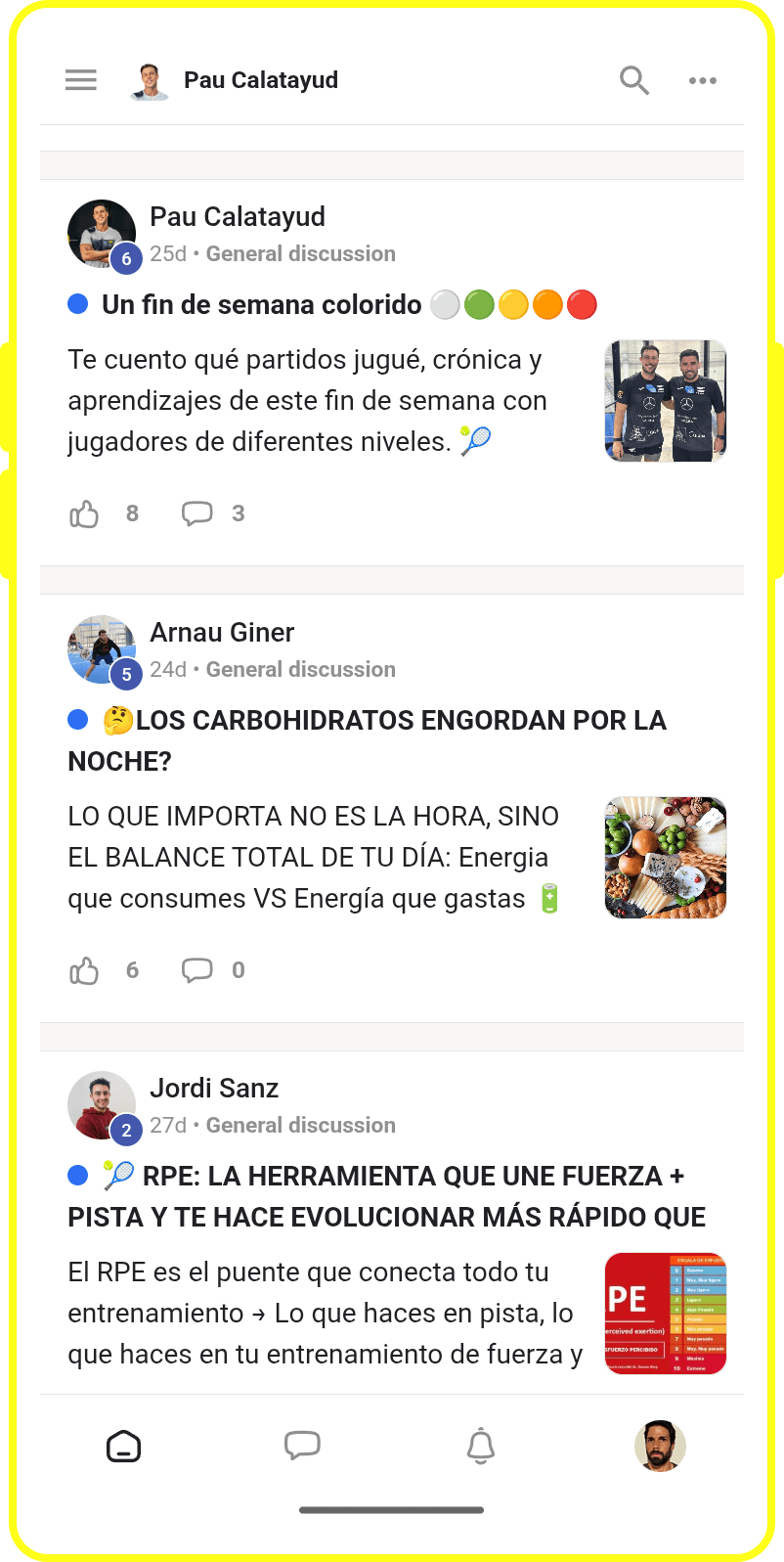 Además, el Método te da acceso a nuestra Comunidad padelera, donde compartimos experiencias de otras personas que ya han subido de categoría, han transformado su físico y han superado su lesión.