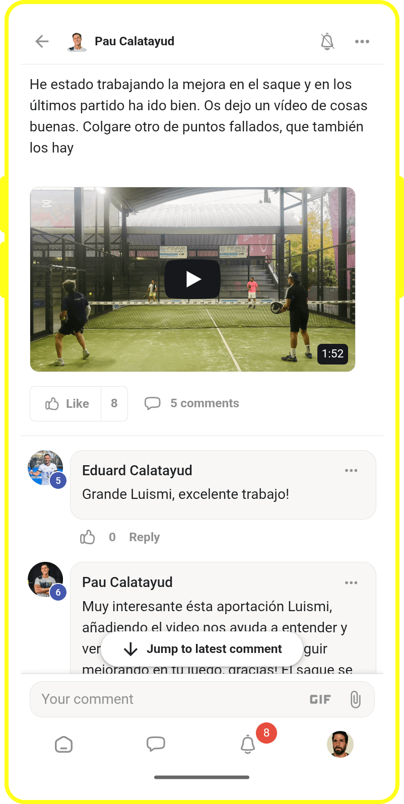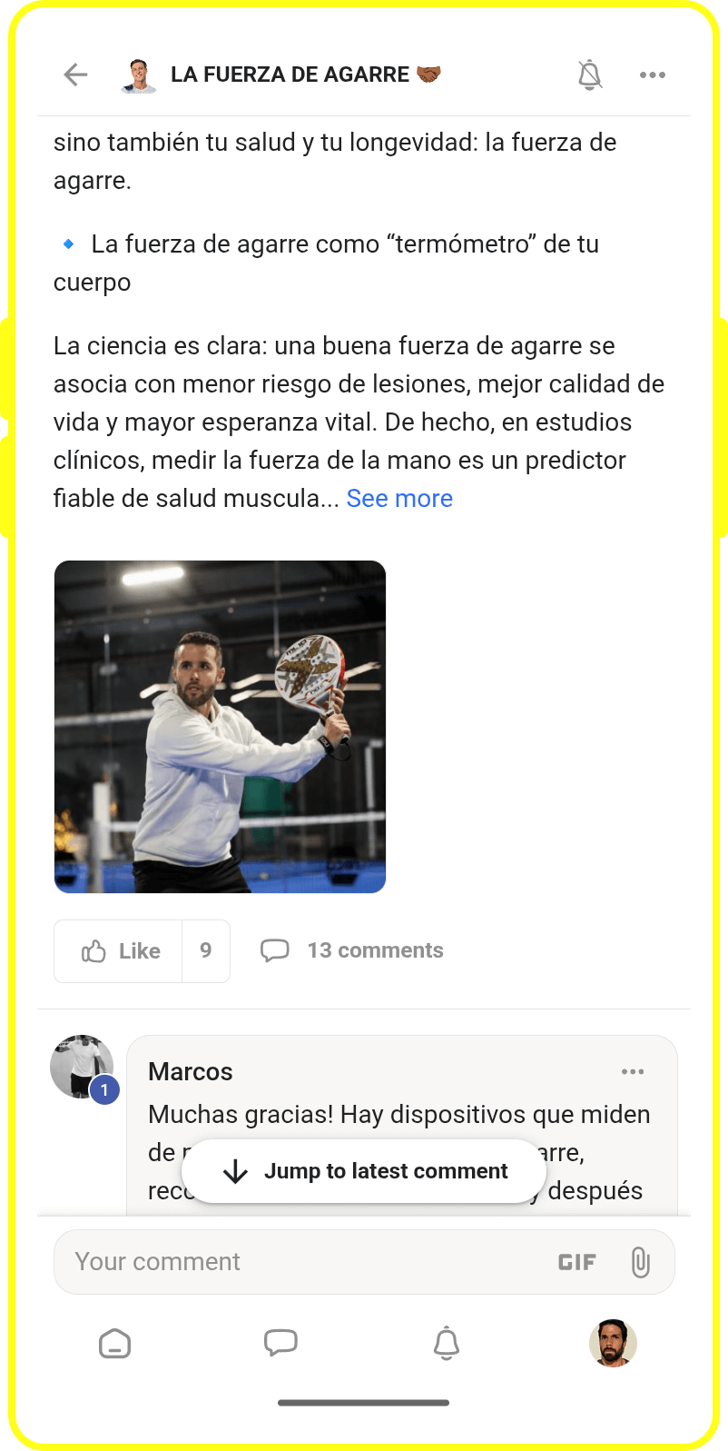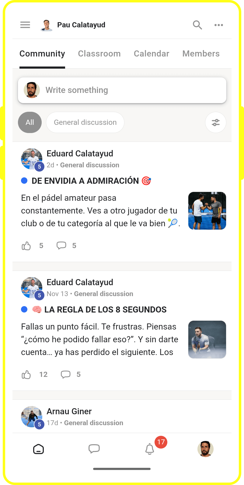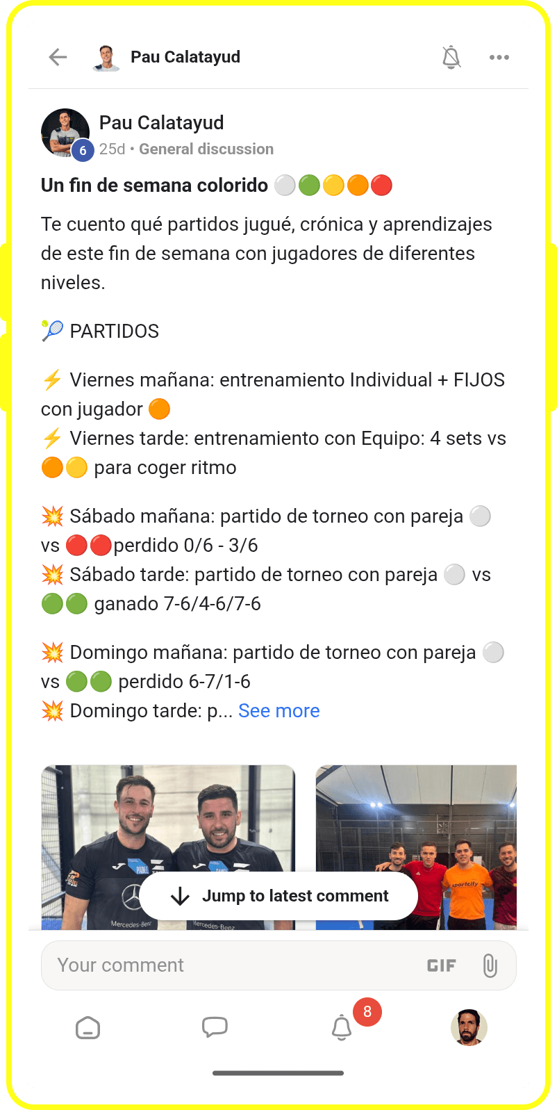 Además, el Método te da acceso a nuestra Comunidad padelera, donde compartimos experiencias de otras personas que ya han subido de categoría, han transformado su físico y han superado su lesión.
